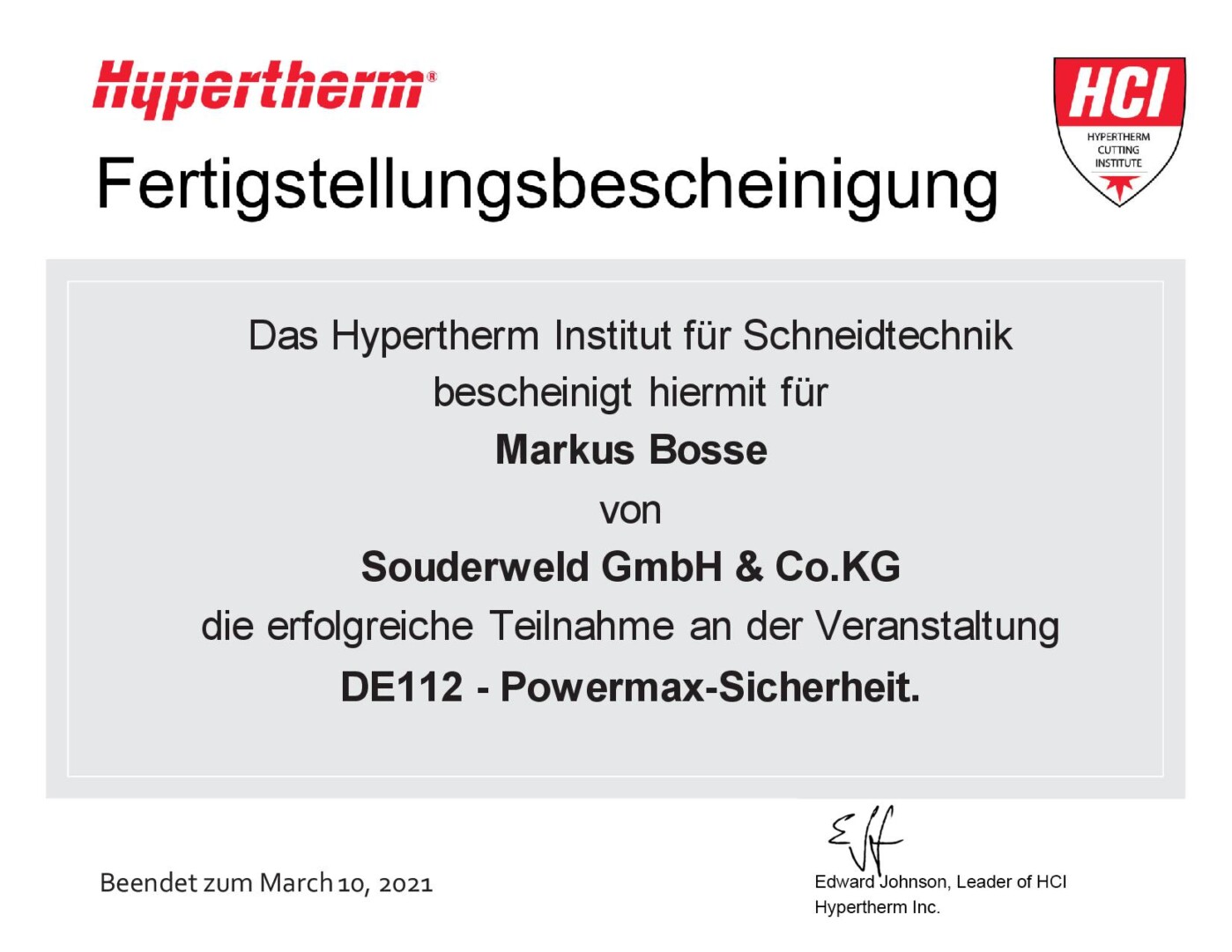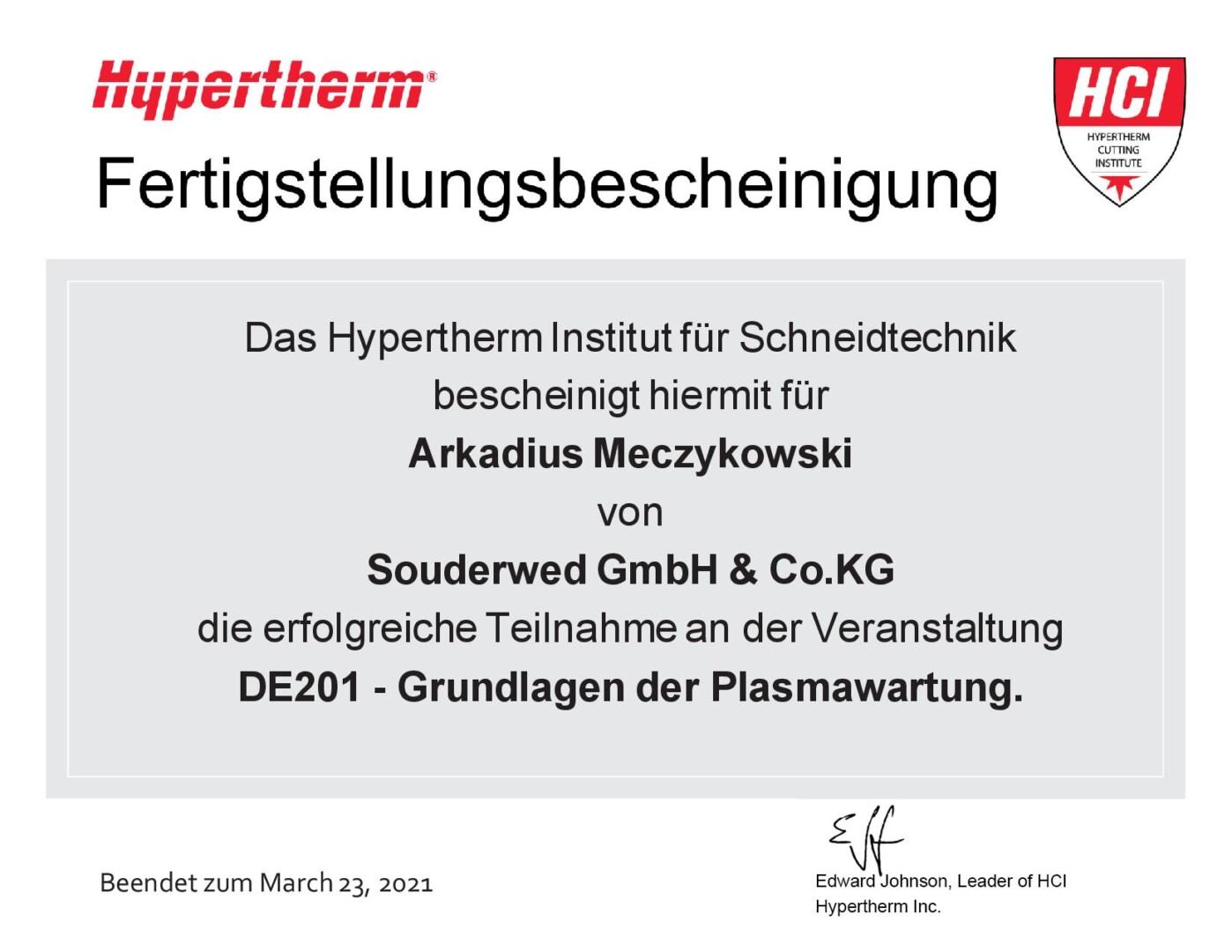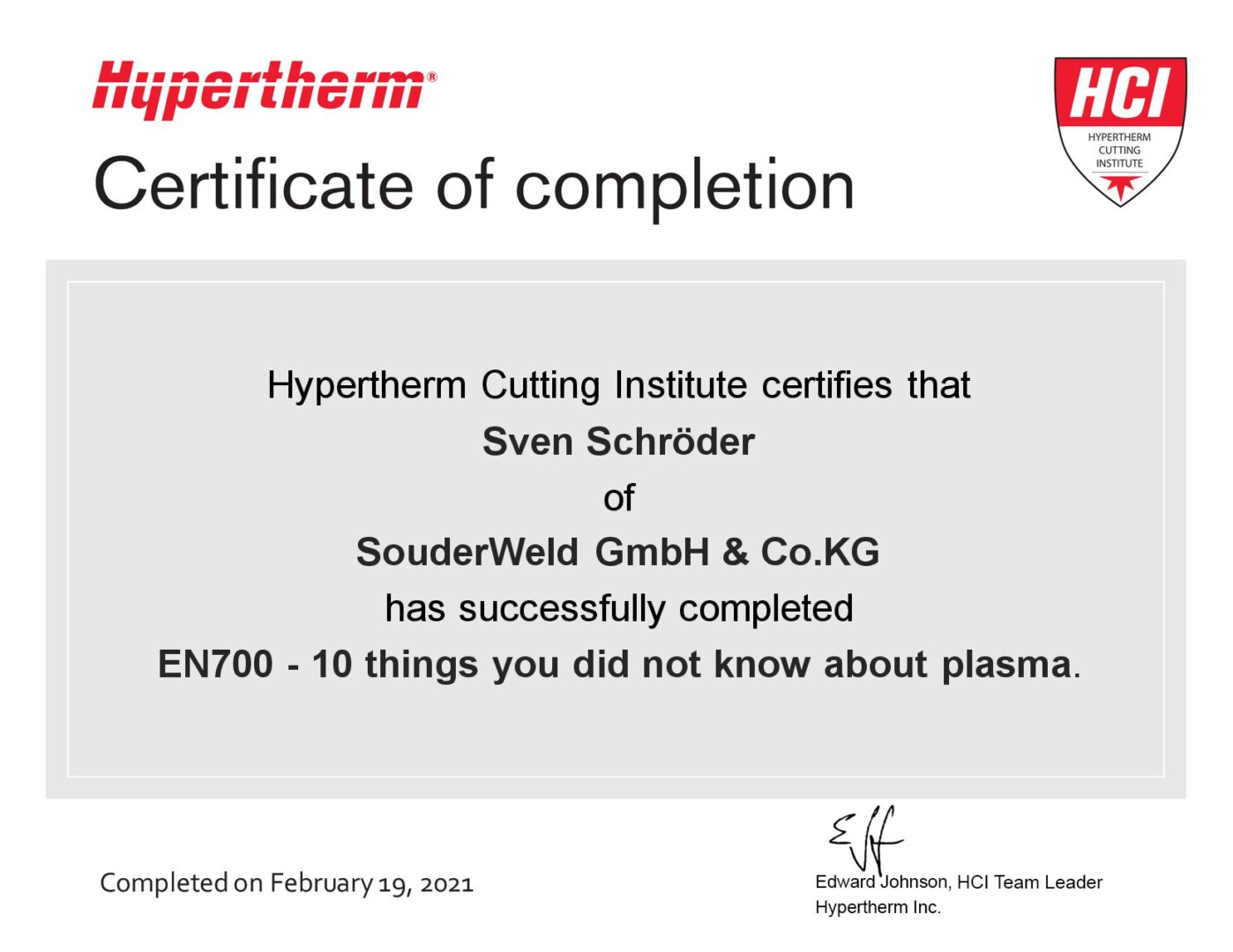 Umfirmierung in Souderweld GmbH & Co. KG