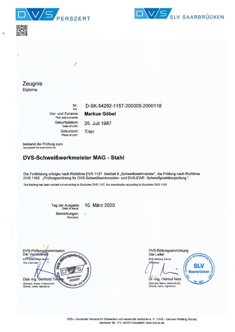 Hier finden Sie all unsere aktuellen Zeugnisse und Zulassungen im Überblick zur Durchsicht oder zur Speicherung in Ihren Unterlagen.